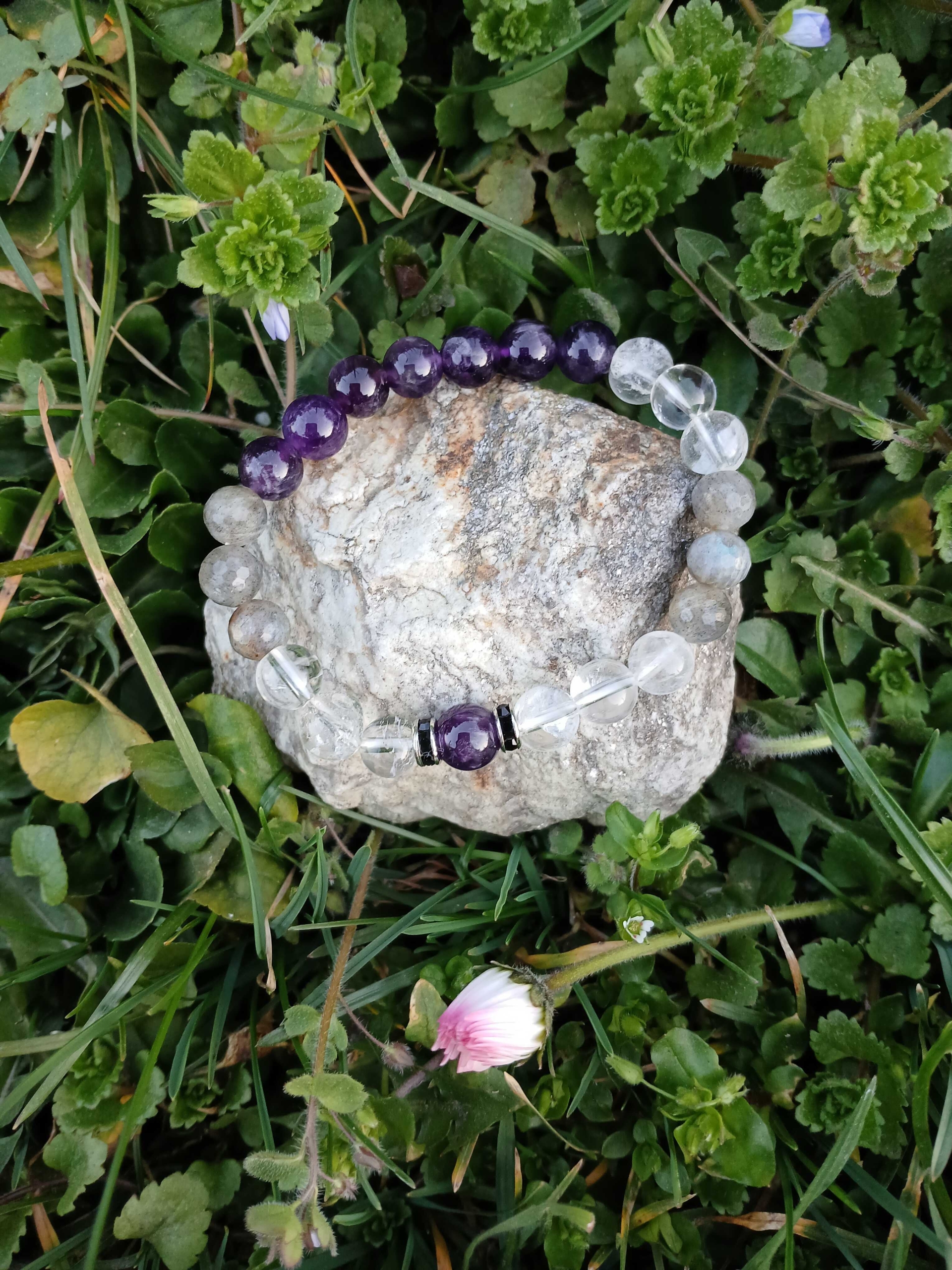 Ametiszt, Hegyikristály, Labradorit 8mm-es ásványokból.