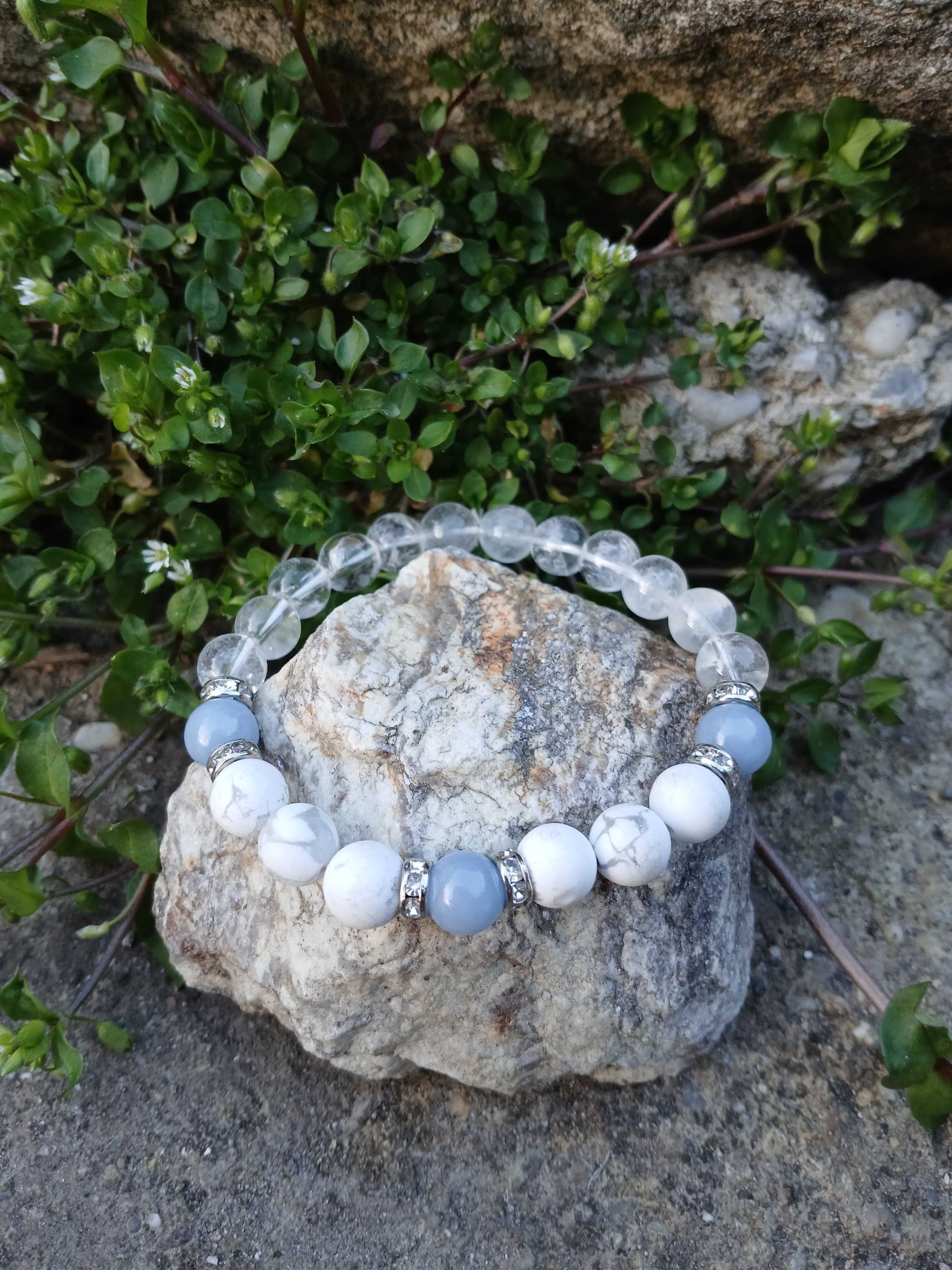 Hegyikristály, Angelit, Angyal Aura Kvarc 8 mm-es ásványokból.